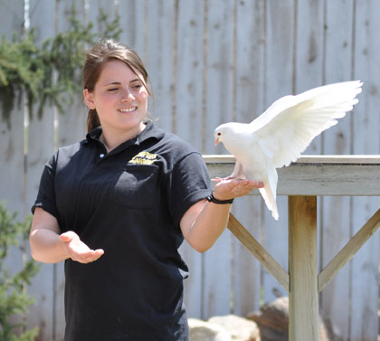 Performing a free flight outdoor bird show can be a lot of fun! I thoroughly enjoy seeing the birds do their natural and unique behaviors and see our Guests’ reactions to them! It is quite amazing to get the opportunity to train animals to voluntarily perform outdoors and NOT fly away. However, bird shows are not always sunshine and lollipops. Sometimes it is hurricane-like winds and golf ball sized hail. It can be extremely difficult if (or should I say “when”) the weather does not cooperate.